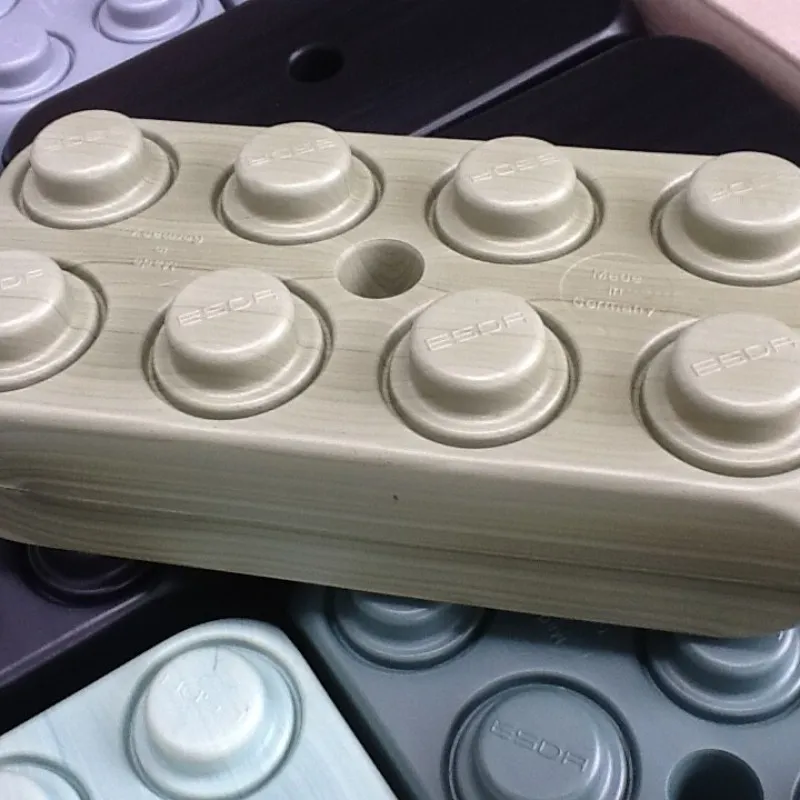 A medida que se hacen los bloques, se cambian los colores. Mientras tanto, la máquina sigue prensando los bloques. Durante un breve periodo de tiempo, el color antiguo de los tubos será sustituido por el nuevo color.