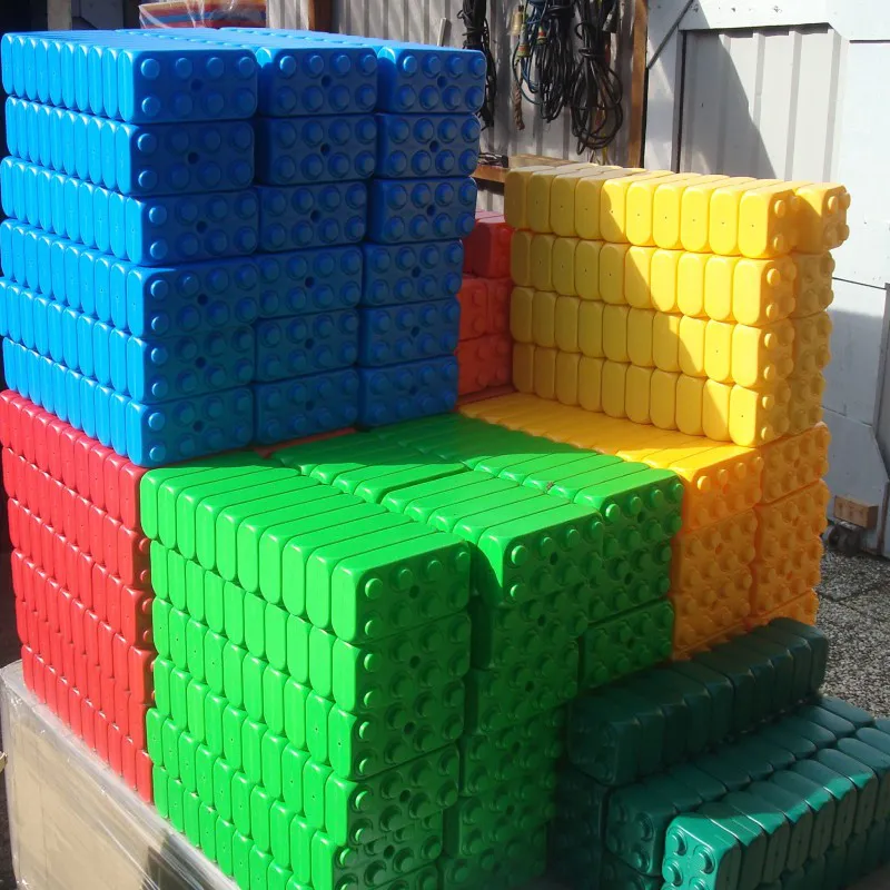 Son los mismos bloques de Lego ESDA que se encuentran en muchos salones de juegos y parques infantiles, pero a mitad de tamaño. Los niños juegan con ellos igual que con Lego, sólo que con ellos se pueden construir cosas más grandes. Desde casas hasta hombres de Lego, todas las cosas que los niños pueden hacer con su imaginación.